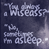 Description: text "You always a wiseass? No, sometimes I'm asleep." on blue-grey background